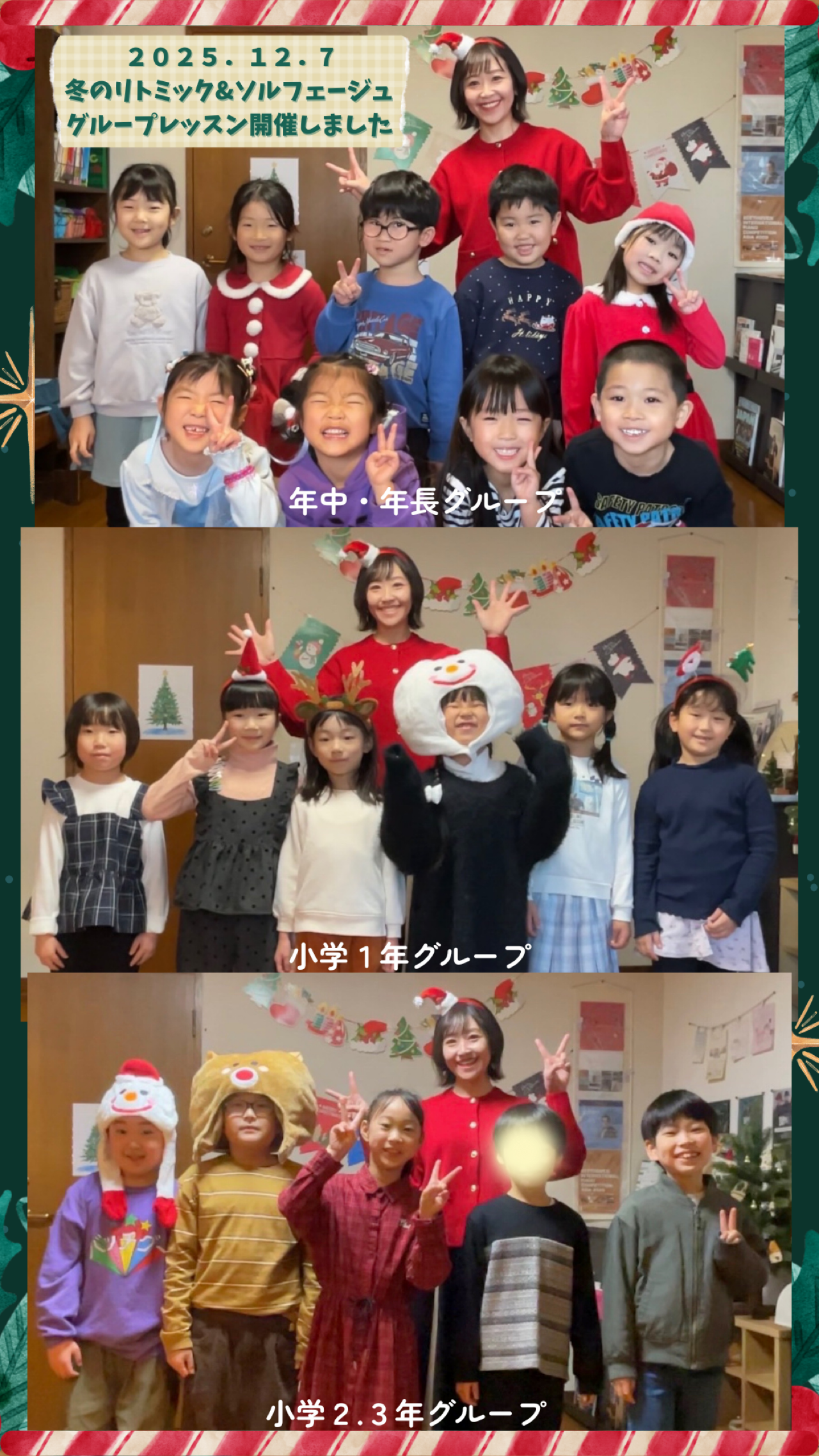春のグループレッスンに続き、秋はハロウィンや発表会と行事続きでしたので、今回は12月のクリスマス時期での初開催でした💕